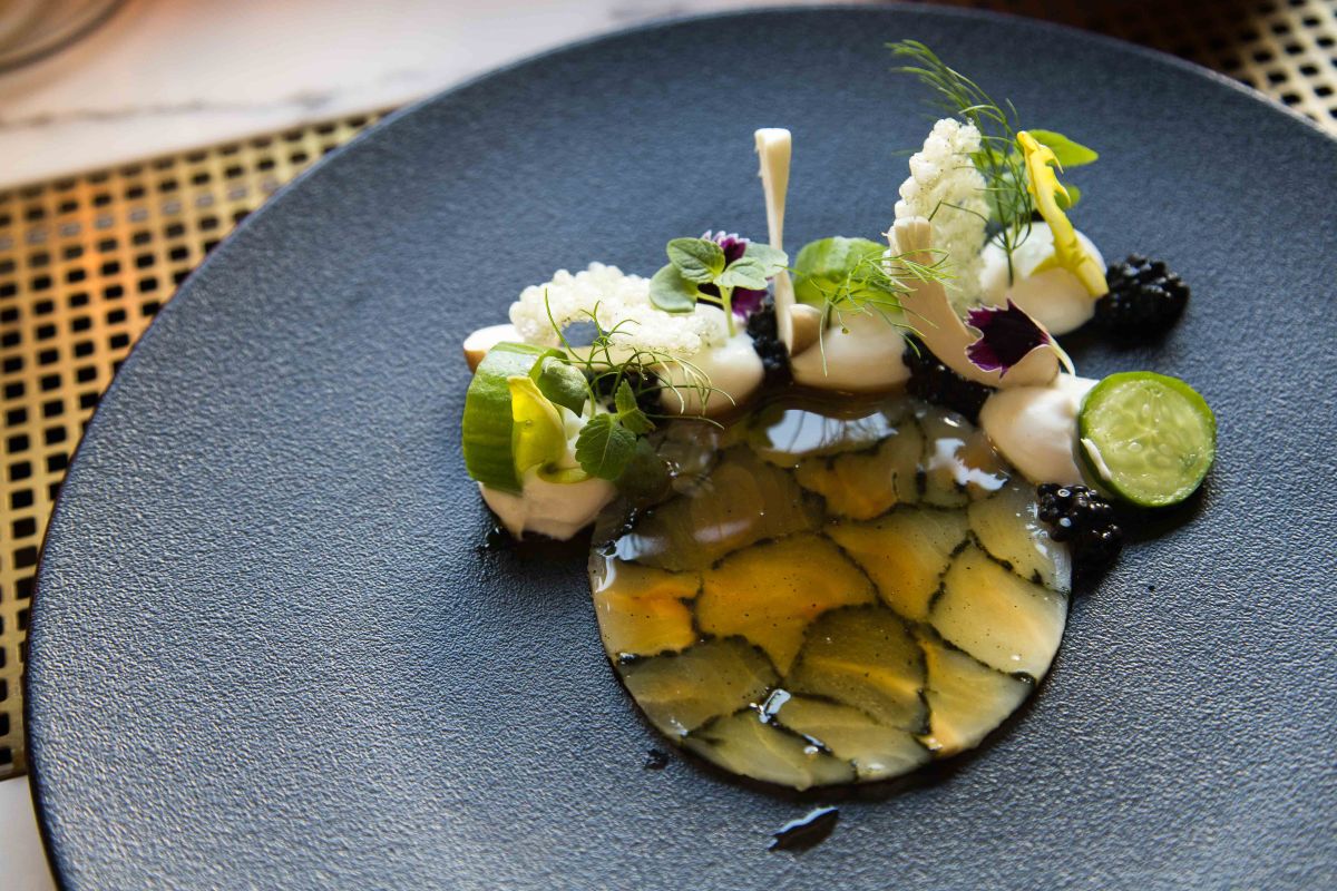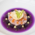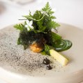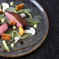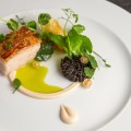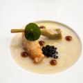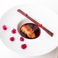 by SureshThis dish is a version of surf and turf which turned out extremely delicious and nicely balanced; it has fatty, juicy meat with a very crisp skin, smokiness from the fish, acid from the white currant, ozoney salinity from the caviar and earthiness from the potato. The herbs bring some freshness and zing. To get the perfect glass-like crispy skin I use a method adapted...