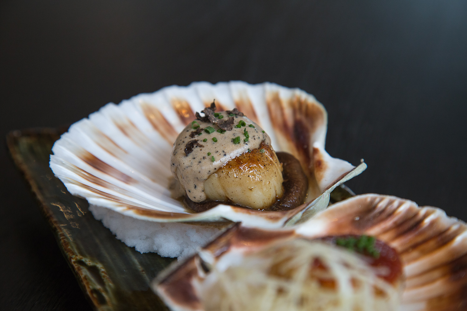The Dr Jekel and Mr Hide theme continued as two preparations of scallop appeared. One highly spiced and one with a yuzu truffle sauce. The first worked and was nicely offset with a crunchy little garnish, while it’s truffled friend fared decidedly less well. Truffle cream sauce with a scallop – I don’t think that makes much sense unless the aim is decadence at any cost (including good taste).