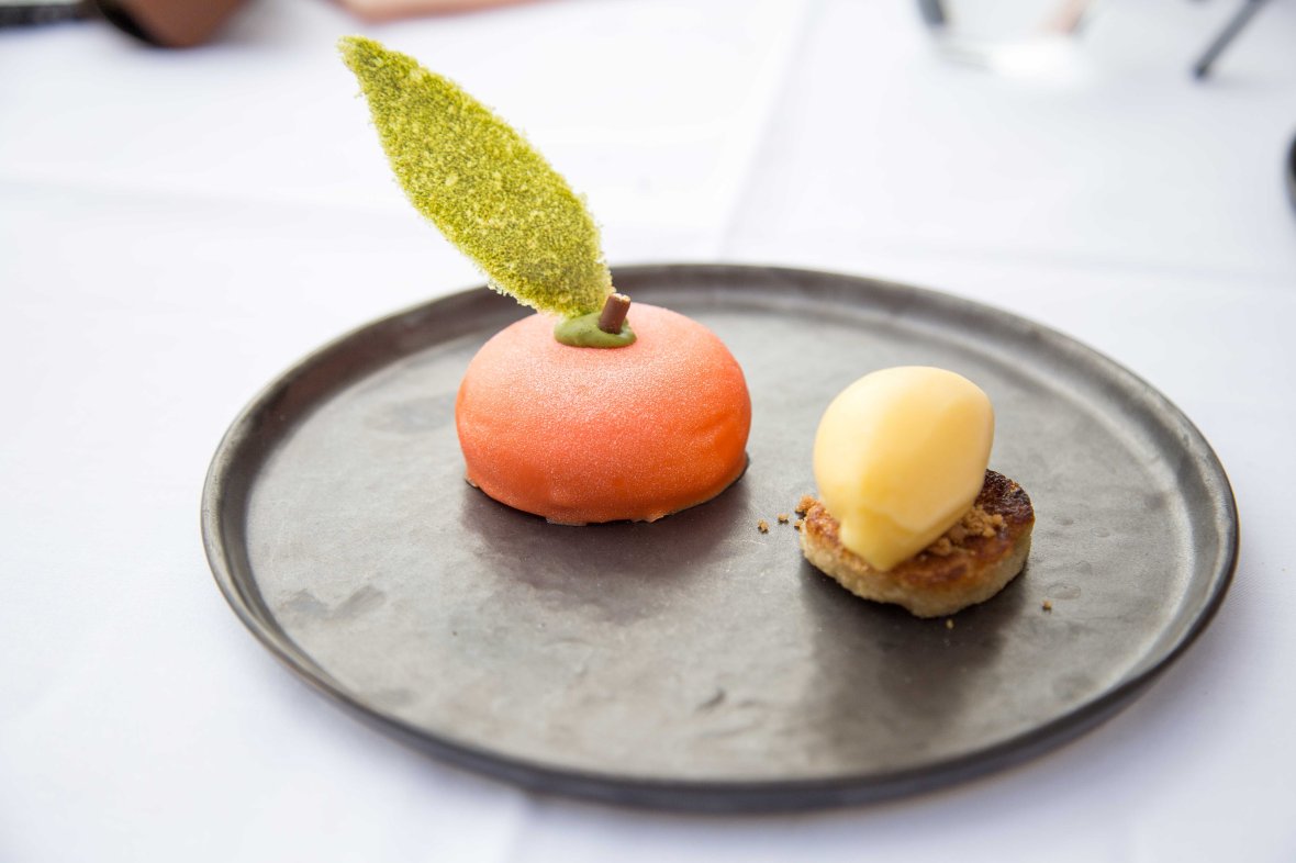 April 2, 2017 DeBokkedoorns_April17-13 White chocolate mouse with french toast and a sorbet of sukerbole