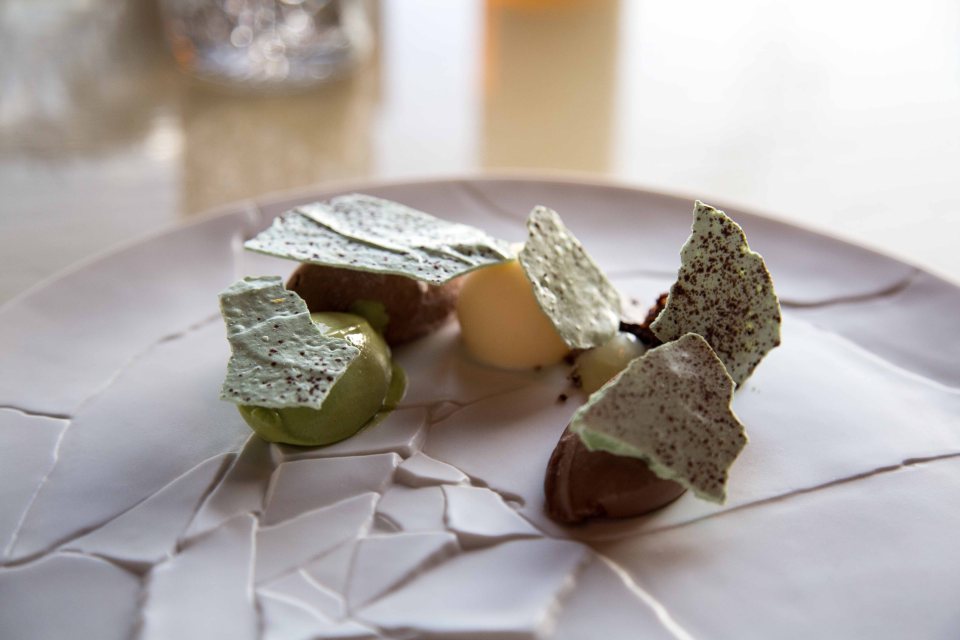 Bitter chocolate with matcha and shiso