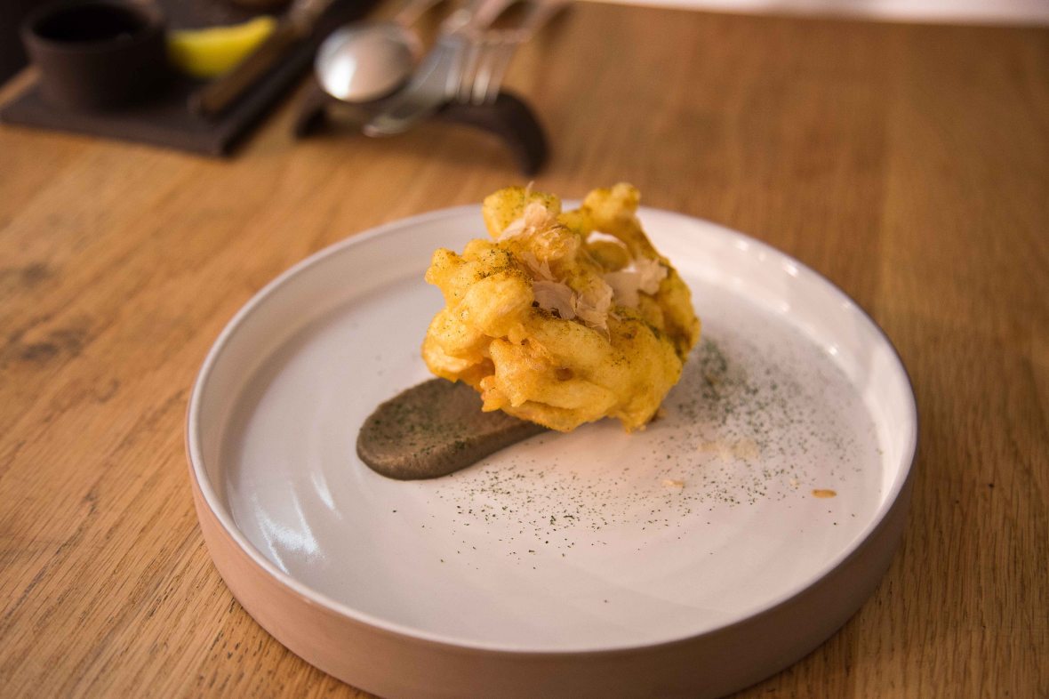 shimeji mushroom, aubergine and miso cream, parsley powder, bonito