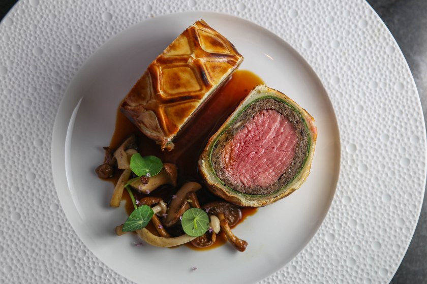 This hugely popular celebratory dish which can appear intimidating at first, but is actually quite reliable once you get the hang of it. It is however a dish that takes care and time to do properly because it works best if you let it chill after each stage of preparation. Follow the steps below and you are in for a treat. Ingredients: (Serves 4 – one 2 inch slice per person) 3-500g fillet beef in a single piece Half a chicken breast 250g shop bought puff pastry, preferably pre-rolled 3-400g chestnut mushrooms Handful of spinach Desert spoon of AP flour Oat milk (or normal milk if you prefer) 2 eggs Creme fraiche Beef stock (home made or very low salt shop bought) Madiera Dijon mustard Method: 1.  Trim the fillet so that its of an even thickness across the entire piece. Now wrap tightly into a cylinder in cling film and put in the fridge for an hour to set the shape. 2.  Put the mushrooms into a food processor and blitz until finely chopped. …